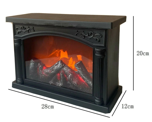 Díszítő kandalló világítással és lánghatással – 28 cm x 20 cm x 12 cm, elemmel működik.