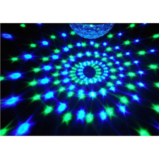 Disco Magic kristálygömb RGB LED-del, hangszóró, USB, kártya, zenelejátszás, forgó fényjáték