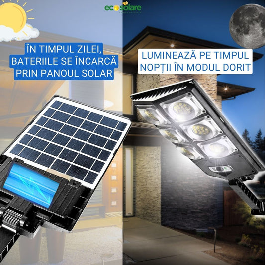 2 db napenergiával működő utcai lámpa 2×160 LED-del, mozgásérzékelővel
