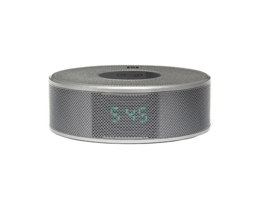 JY-29C hordozható hangszóró órával, rádióval és vezeték nélküli töltéssel, Bluetooth, ezüst