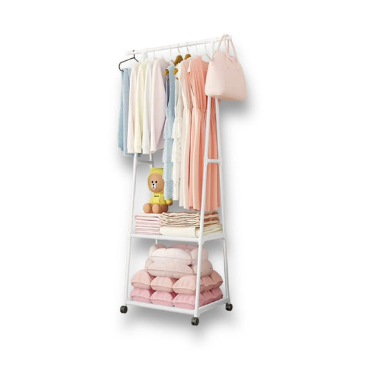 Háromszög alakú ruhatartó és vállfák 2 alsó polccal