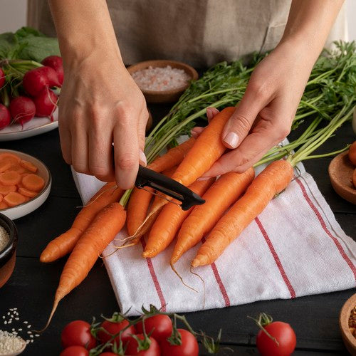 - Univerzális használat: Ideális a zöldségek és gyümölcsök, mint például burgonya, répa, uborka és alma gyors tisztítására.
