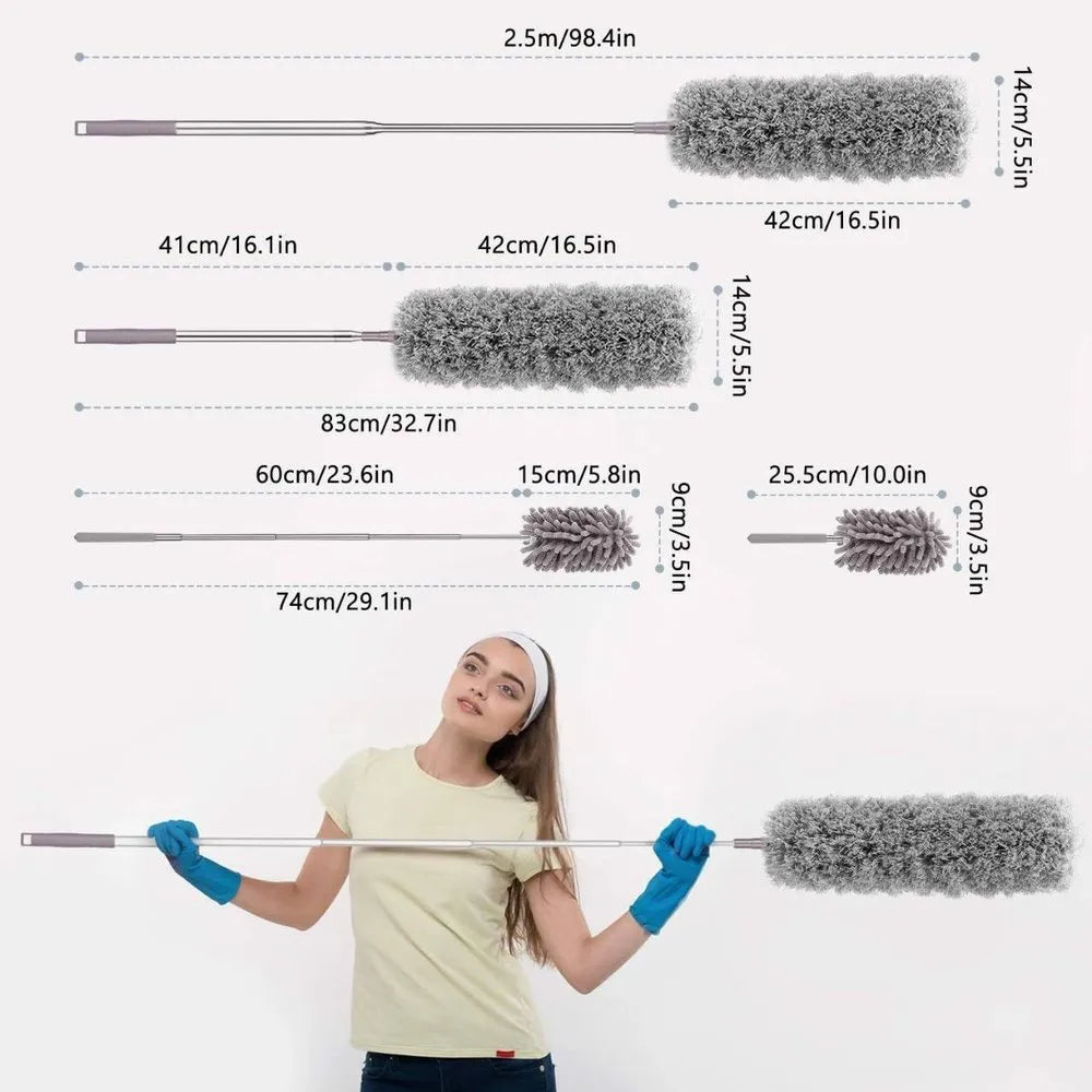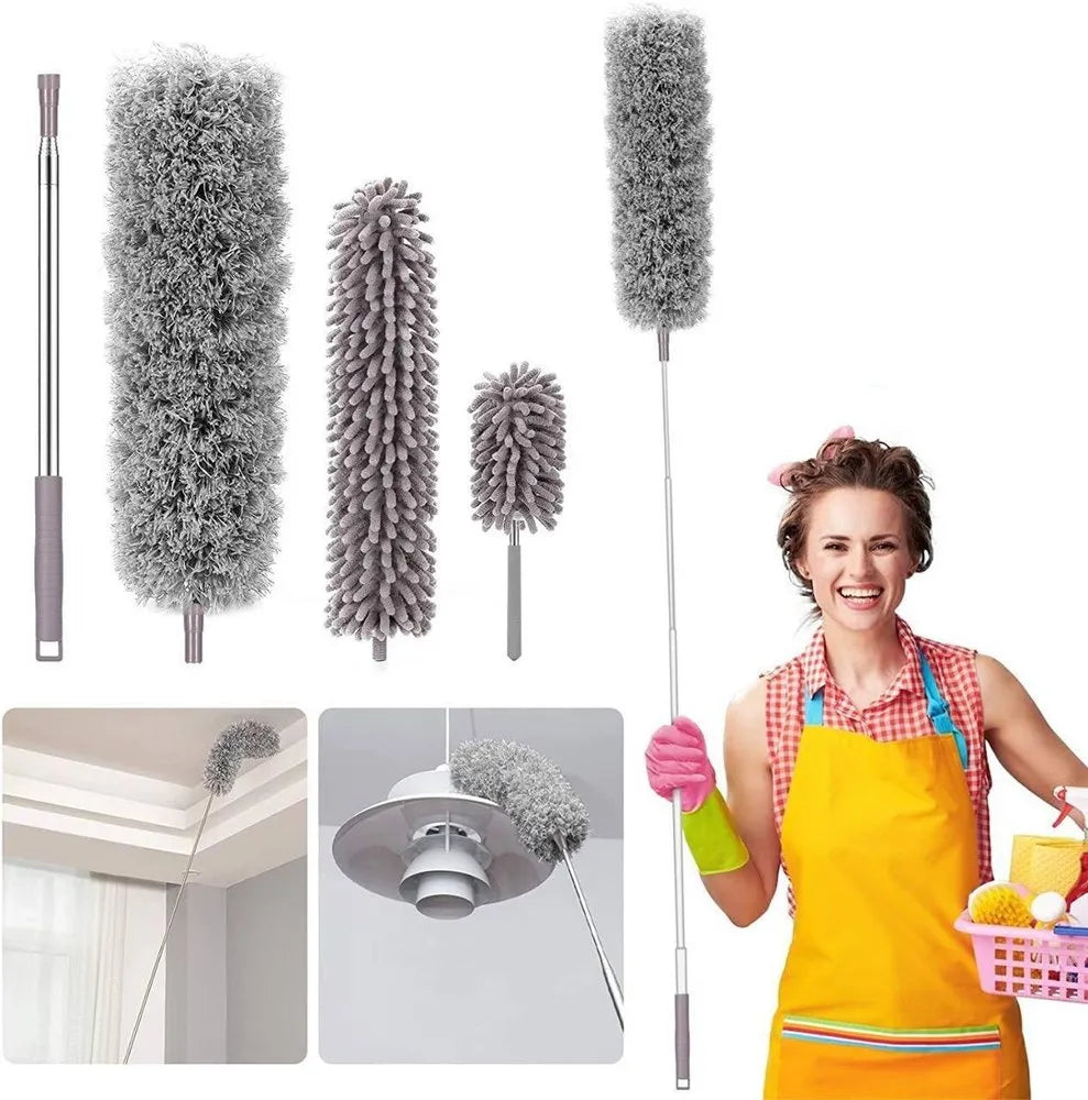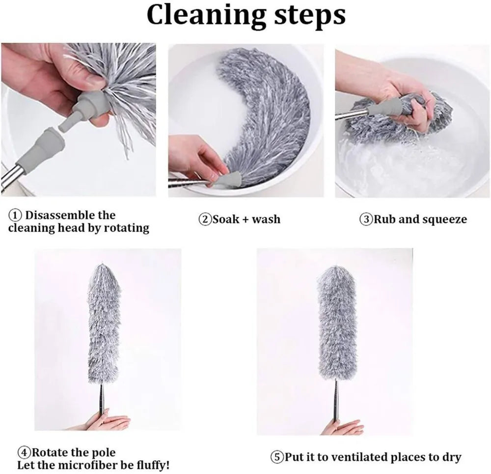 【Multifunkcionális és kihúzható porkefe】Rozsdamentes acél kihúzható rúddal rendelkezik, amely kényelmessé teszi a belső vagy ablaktisztítást, különösen a magas helyeken. A rövid tolltartóval ellentétben, a szuperhosszú mikroszálas tolltartó akár 282 cm-es hosszúságú is lehet, így a rúd hosszának beállításával tisztíthatja a magas és alacsony helyeket.