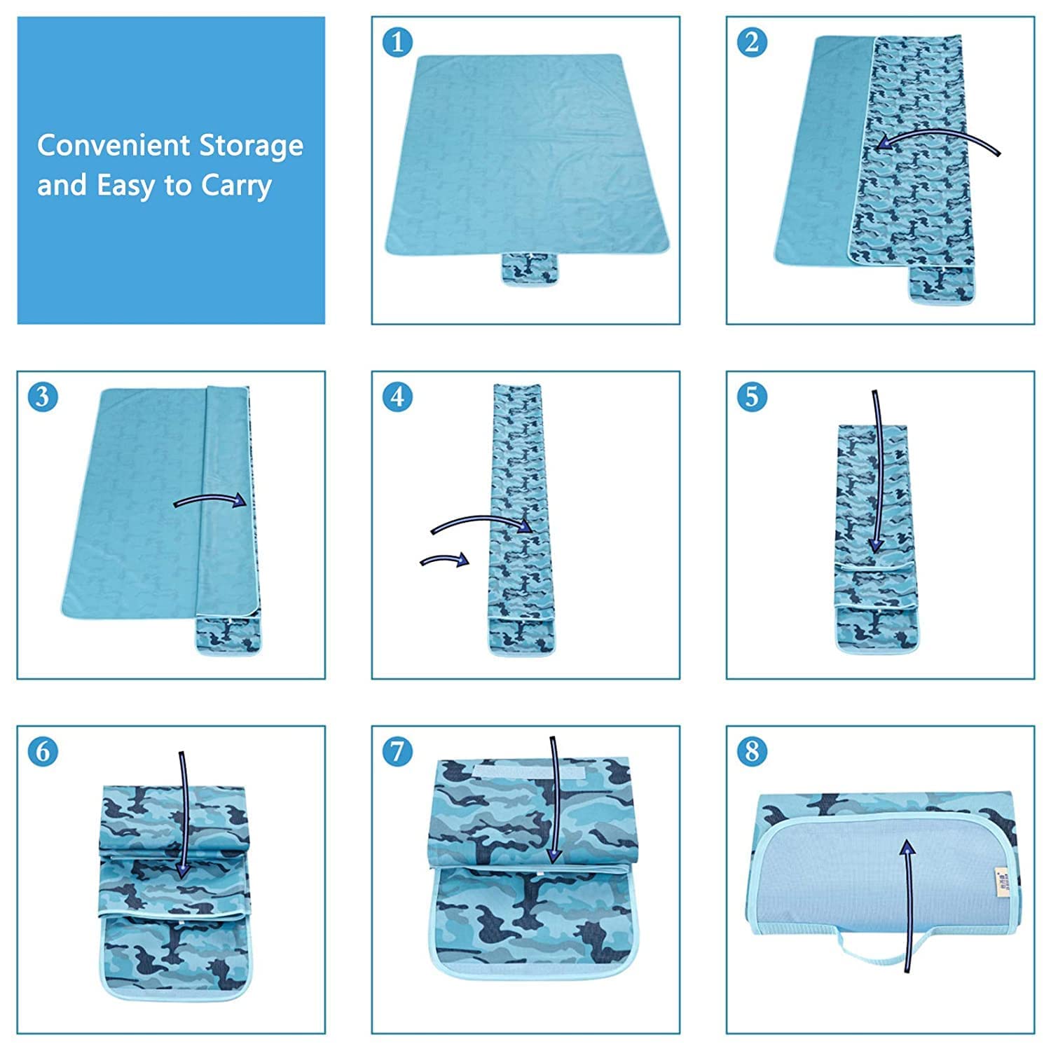 KÖNNYEN TISZÍTHATÓ: Töröld le a vízálló hátoldalt egy törölközővel vagy kendővel, és távolítsd el a fűt, homokot vagy sarat a felületről. Használat után kézzel is mosható. (Ne mosd mosógépben vagy ne szárítsd meg, ne tisztítsd vegyszerekkel vagy vasald ki.)
